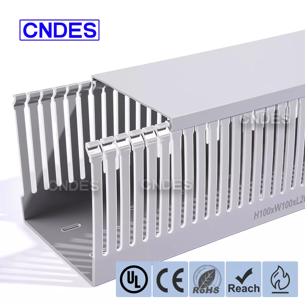 Déantar an Ducht Sreangaithe Imfhálú PVC Sliotán Oscailte Cáilíochta 100mm Cáilíochta a mhonarú ó ábhar PVC lasair-retardant UL94 V-0, atá féin-mhúchadh nuair a bhaintear an fhoinse lasair, rud a chuireann moill ar iomadú dóiteáin go héifeachtach agus feabhas a chur ar shábháilteacht leictreachais iomlán. Cuidíonn a fheidhmíocht inslithe den scoth le rioscaí sceitheadh reatha agus gearrchiorcaid a chosc, ag cinntiú oibriú cobhsaí i imfháluithe leictreacha agus painéil rialaithe.
