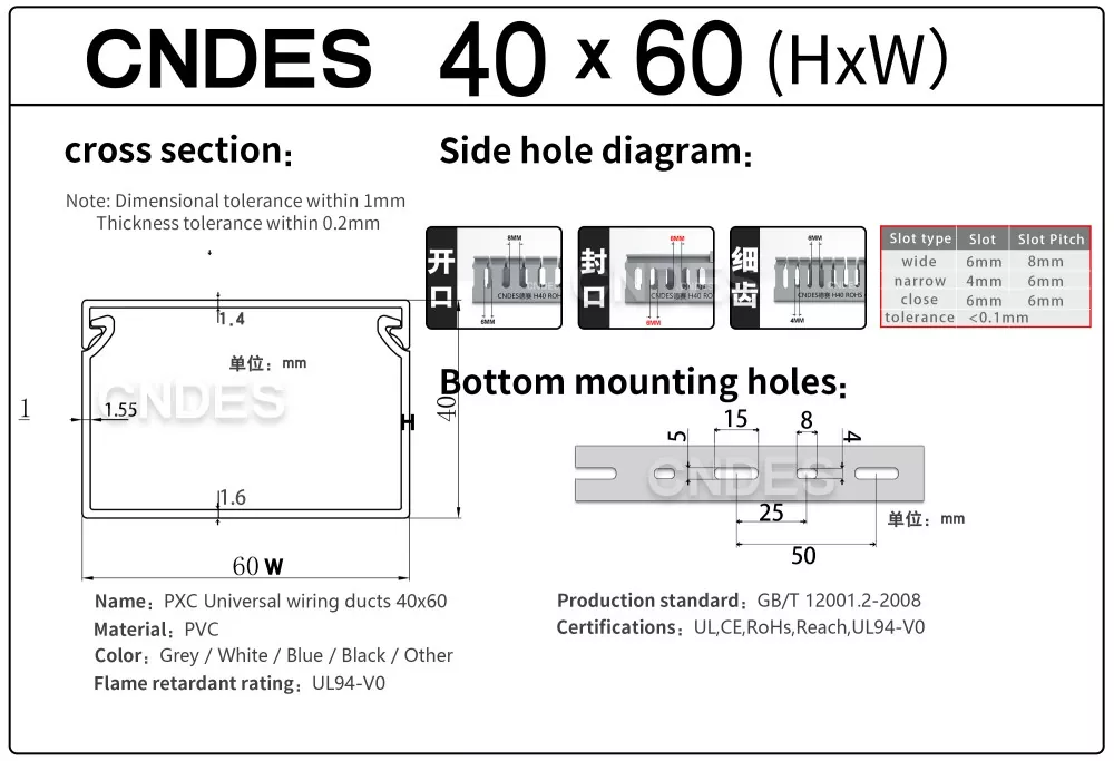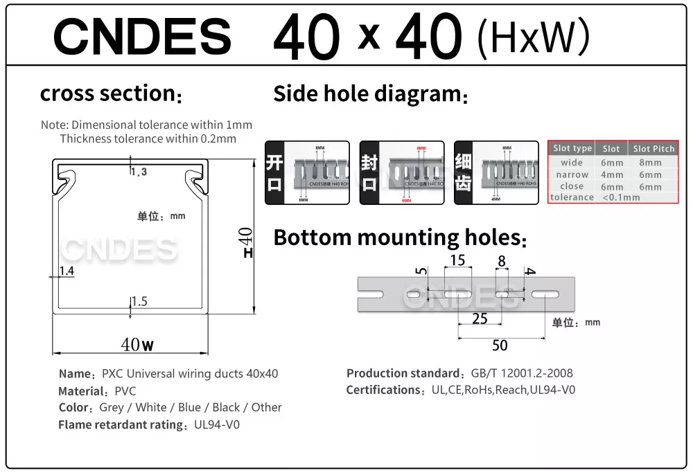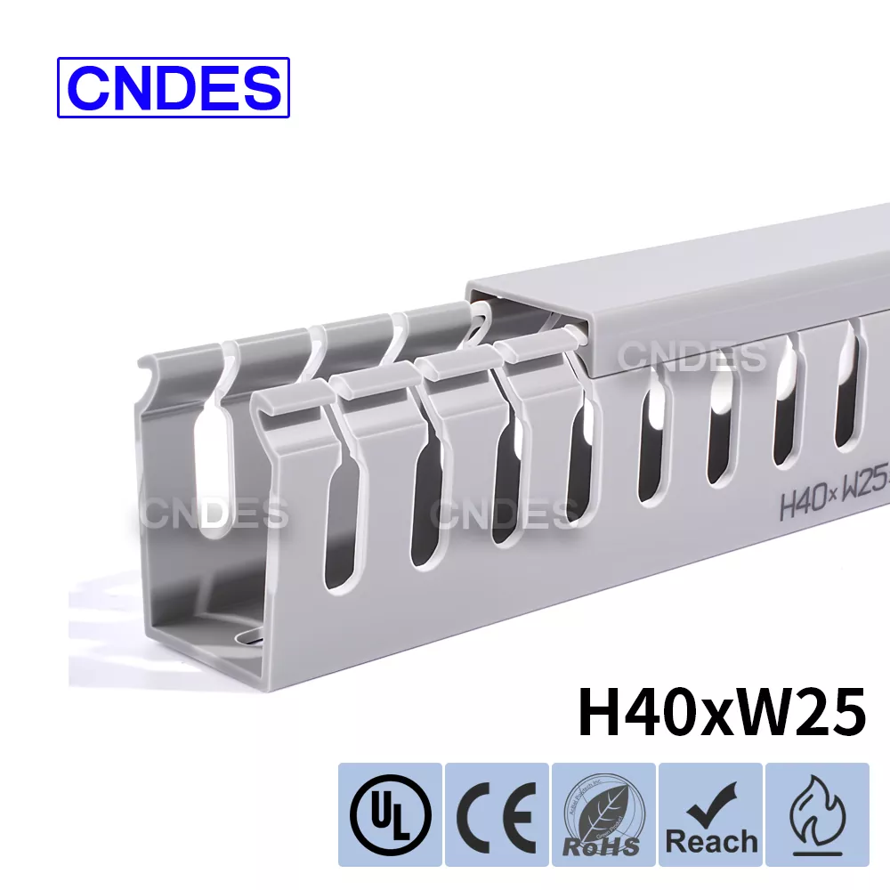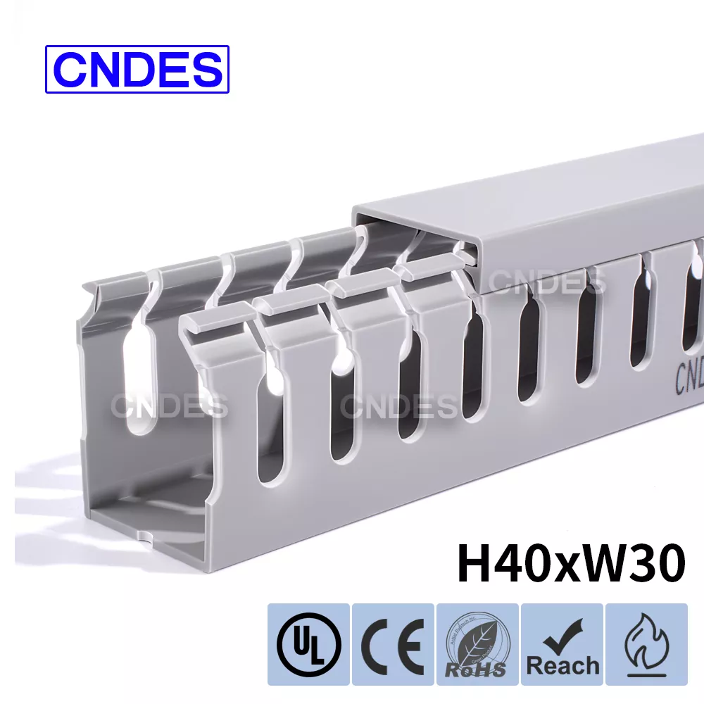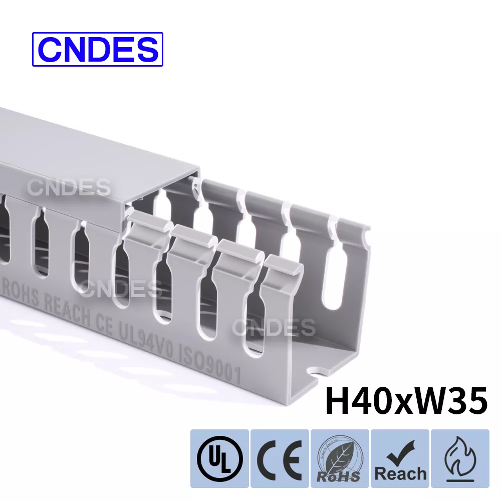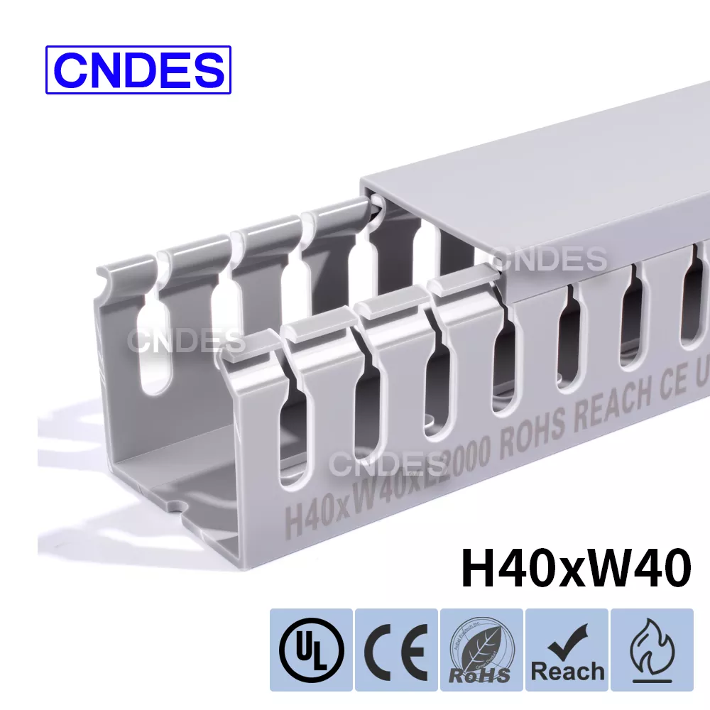 CNDES is Leading Slotted PVC Wiring Raceway Duct monaróirí & soláthraithe. Anseo tabharfaimid isteach ár dtráidirí cábla airde 40mm, lena n-áirítear 40 * 25, 40 * 30, 40 * 35, 40 * 40, agus 40 * 60.