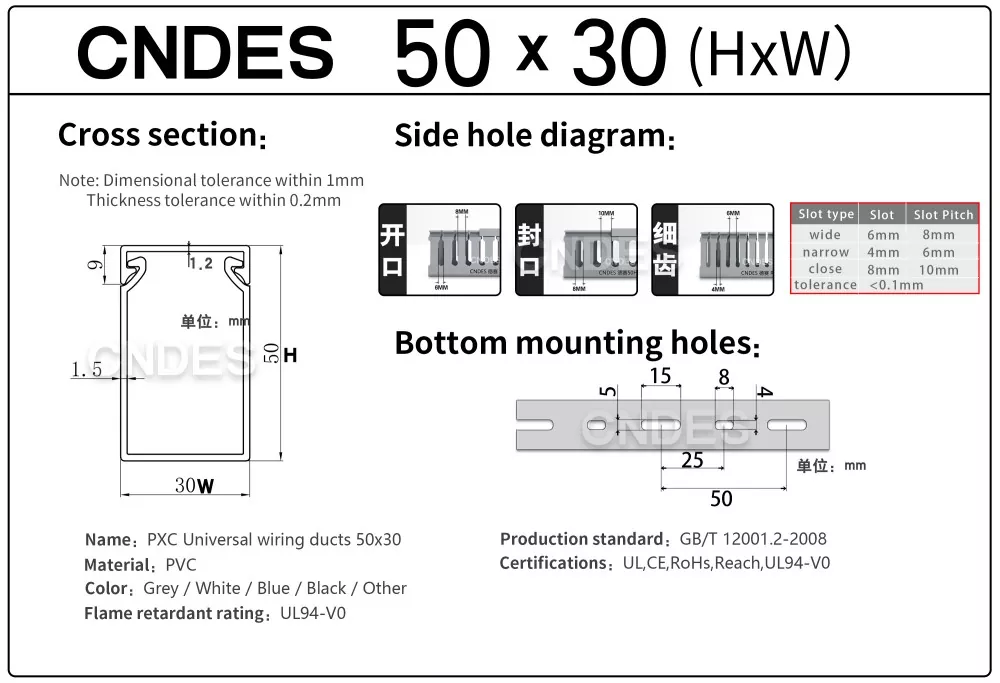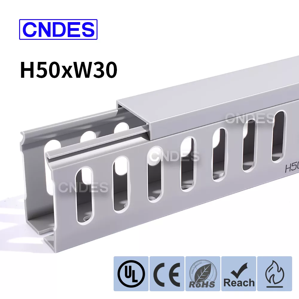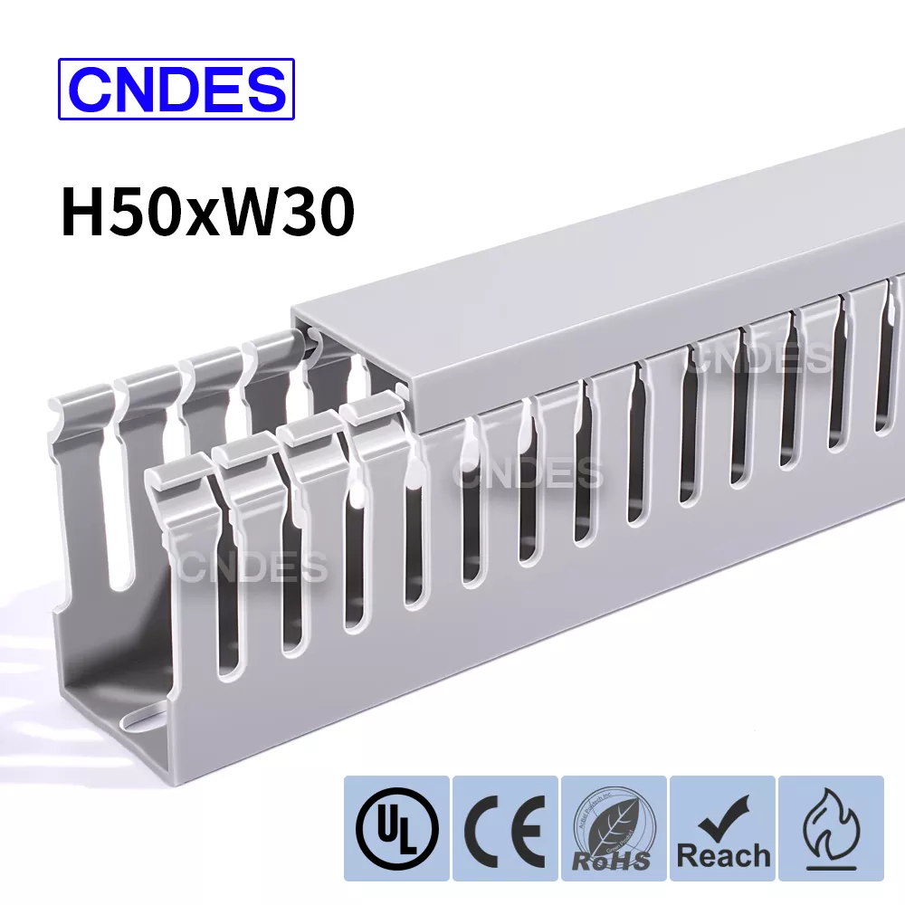 Is réiteach dlúth, éifeachtach é an Duct Eagraíochta Cábla PVC Sliotán Cáilíochta 50 × 30 ó CNDES chun cáblaí a bhainistiú i spásanna daingean, mar shampla caibinéid rialaithe beaga, imfháluithe sonraí, agus boscaí acomhal trealaimh. Ligeann an duct sreangaithe caol-phróifíl seo do shuiteálaithe cáblaí a eagrú, a scaradh agus a chosaint gan an iomarca spáis painéil a áitiú.
