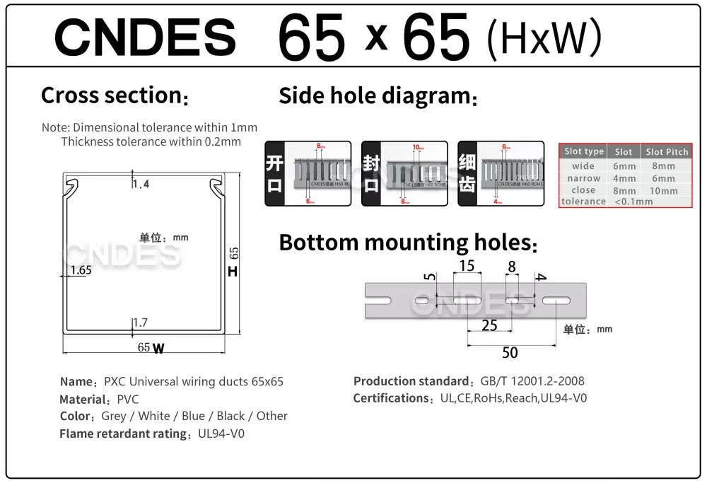 Mar mhonaróir gairmiúil, ba mhaith linn CNDES slotted 65 × 65 PVC Cábla Raceway a sholáthar duit.