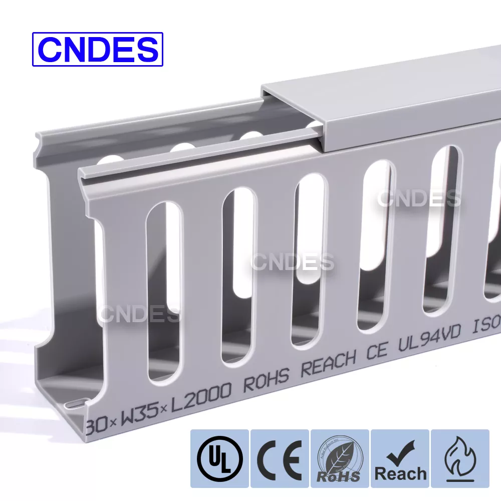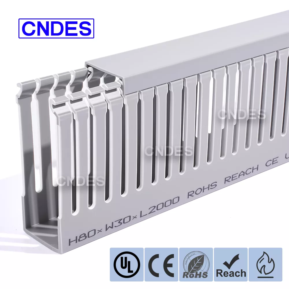 Tá Duchtanna Sreangaithe PVC Sliotán Oscailte 80 × 30 Ardfheidhmíochta CNDES deartha le haghaidh bainistiú cábla éifeachtach, eagraithe agus solúbtha i bpainéil rialaithe tionsclaíocha, caibinéid leictreacha, agus caibinéid uathoibrithe. Le airde ach 30 mm agus leithead ach 80 mm, soláthraíonn na duchtanna dlúth seo réiteach bainistíochta cábla ard-dlúis agus iad ag éascú suiteáil, cothabháil agus uasghrádú sa todhchaí.