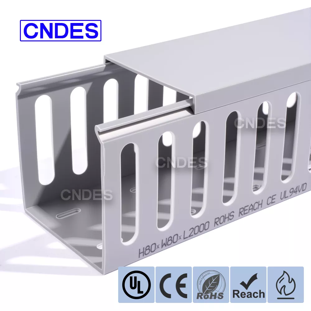 Má tá líon mór cáblaí, trastomhais sreinge tiubh i gceist le do thionscadal, agus go dteastaíonn oibríocht chobhsaí fadtéarmach uaidh, beidh an Ducht Sreangaithe Lasc-chláir PVC Slotted Ardfheidhmíochta 80 × 80 ina rogha duit!